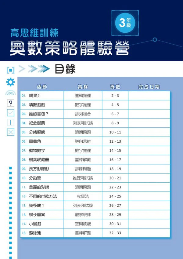 • 每冊由淺入深,提供多種奧數策略,擴闊學生的數學視野,啟發他們多角度思維
