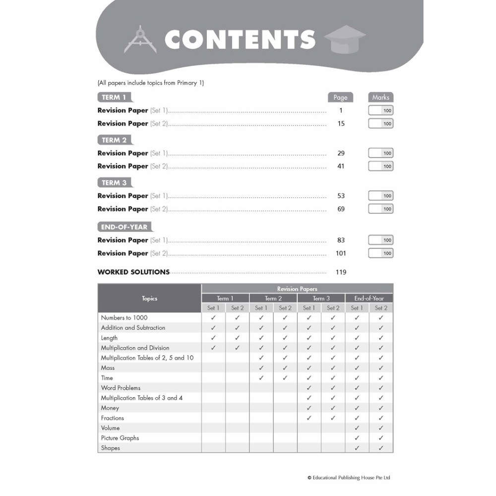 Maths Revision Papers consists of termrevision papers and end-of-year revisionpapers to evaluate pupils’ learning at theend of each school term or at the end ofthe year.The revision papers consist of standardquestions found in schools' assessmentsand checkpoints.